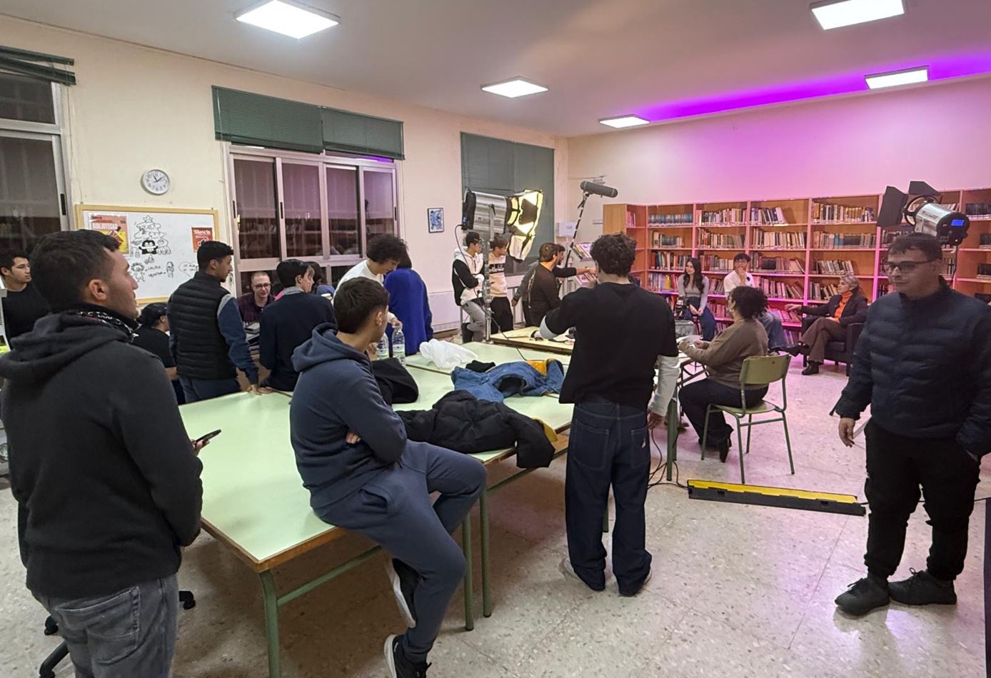 La biblioteca del IES Siete Colinas se ha convertido en un improvisado estudio de televisión, con la colaboración de profesorado y alumnado de la Familia de Imagen y Sonido. La razón estaba más que ju...
